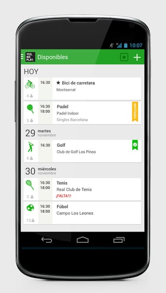 Pero, ¿qué es Yesweplay? Es la forma más fácil y rápida de organizar actividades deportivas con amigos o conociendo a gente nueva. Solo hay que escoger un deporte entre los más de 80 de los que dispone la app. A continuación se selecciona el día, la hora y el lugar (tu club, gimnasio o cualquier parte de la ciudad). Y finalmente queda lo mejor, invitar a amigos o publicar la actividad para que se apunte gente de tu zona.